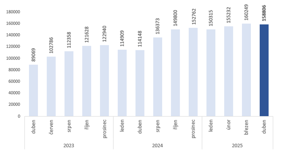 Humanitární dávku v dubnu čerpalo pouze asi 86 tisíc osob. Toto číslo se postupně snižuje. V dubnu 2022 bylo takto podpořeno přes 234 tisíc lidí, o rok později se toto číslo snížilo na asi 149 tisíc a ve stejném období roku 2024 dávku pobíralo asi 94 tisíc lidí.