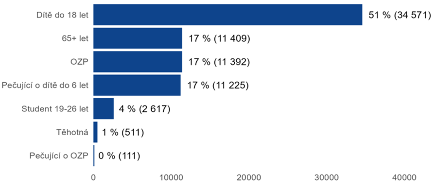 Zranitelným osobám, které pracovat nemohou (typicky dětem, seniorům nebo osobám se zdravotním postižením), stát poskytuje humanitární dávku. Ta představuje jedinou formu přímé finanční pomoci, na kterou v ČR mají osoby s dočasnou ochranou nárok. Pouze v krajních případech mohou čerpat ještě jednorázovou mimořádnou okamžitou pomoc. Z dat MPSV vyplývá, že 7 z 10 uprchlíků pobírajících humanitární dávku, patří do některé ze zranitelných skupin. Více než polovinu pak tvoří děti.