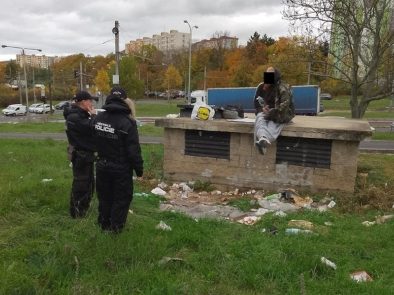 Ústí nad Labem - V pátek 24. října v 10:20 prováděla hlídka strážníků kontrolní činnost v obvodu Severní Terasy, zaměřenou na čistotu města a na lidi bez domova.