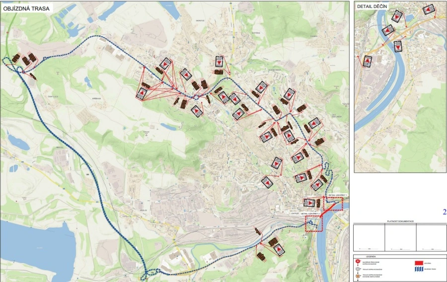 Objízdná trasa v Ústí nad Labem je naplánována přes Důlce, Severní Terasu, Bukov a Všebořice.