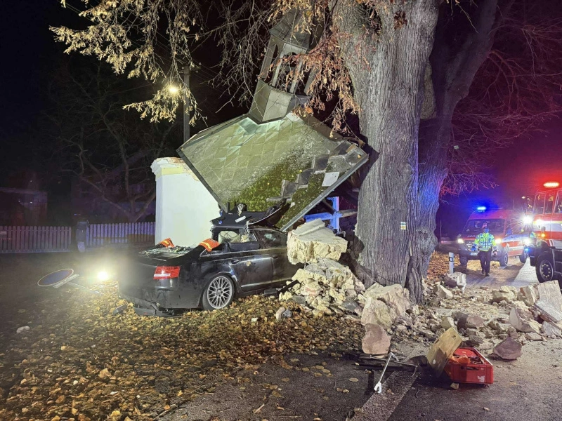 "K tragické dopravní nehodě došlo dnes v noci před 3 hodinou v obci Křižanov. Řidič vozidla Audi, který jel od Oseka směrem na Dubí narazil zřejmě ve vysoké rychlosti do kapličky. Vozidlo bylo následně zasypáno sutí a 37letý řidič bohužel ve vozidle zahynul. Okolnosti nehody jsou předmětem šetření policistů. Část jízdního pruhu v okolí kapličky je omezen do vyjádření statika, jeďte v tomto úseku opatrně," uvedla policejní mluvčí Ilona Gazdošová.
