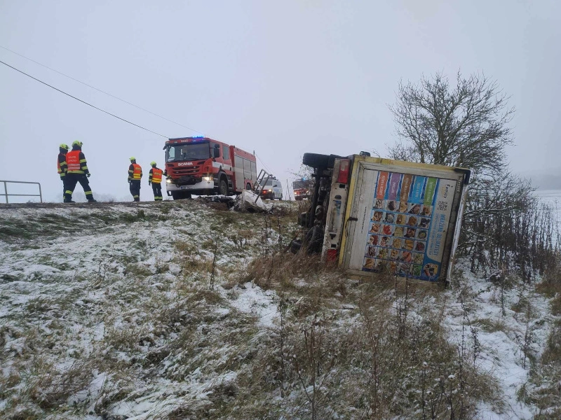 Na Lounsku u Postoloprt ráno bouralo osobní auto s nákladním, večer se pak srazily dva kamiony a byla tak na dvě hodiny uzavřena dálnice D7. U Očihova se auto převrátilo na bok, řidič se zranil.