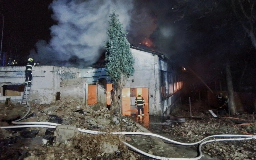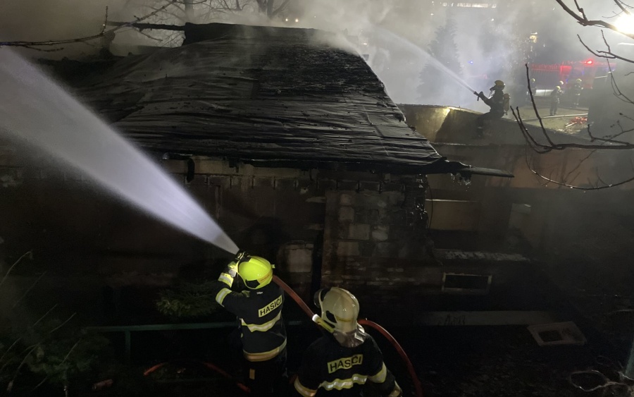 Hořelo na ploše 40 x 20 metrů. „K hašení nasazeno 5 vodních proudů a výšková technika,“ zveřejnili hasiči.