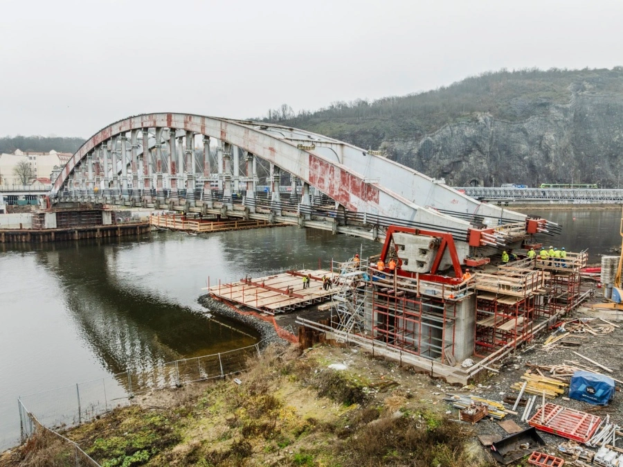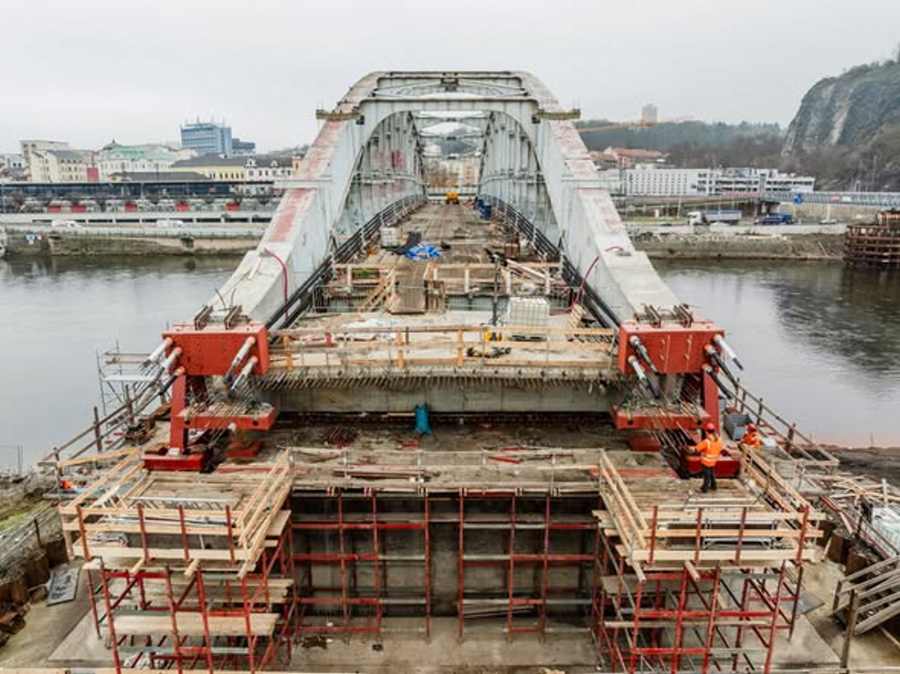 Ústí nad Labem – Do další etapy vstoupila před několika dny rekonstrukce mostu Dr. Edvarda Beneše spojující Střekov s centrem krajského města. Stavební technika vyzvedla konstrukci do pracovní polohy.