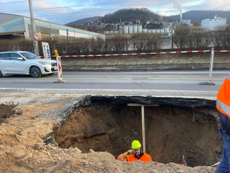 Ústí nad Labem - V souvislosti s havárií vodovodu ve správě SčVK v ulici Děčínská na Střekově došlo ve středu 7. ledna k propadu vozovky. Vlivem havárie došlo k zjednosměrnění provozu, a to směrem od okružní křižovatky do ulice Železničářská.