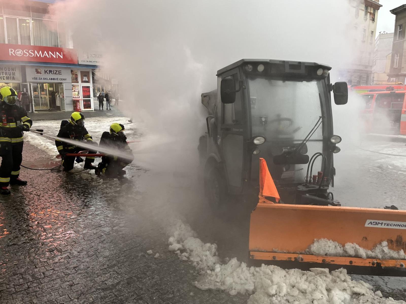 Ústí nad Labem - Na Mírovém náměstí v Ústí nad Labem došlo ve čtvrtek 15. ledna ráno k požáru zametacího vozu. Událost byla hasičům nahlášena v 8:44 hodin.