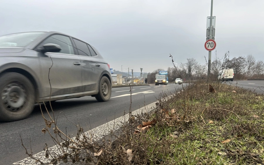 Frekventovaná silnice E442 protínající Žižkovu ulici. Foto: Petr Sochůrek
