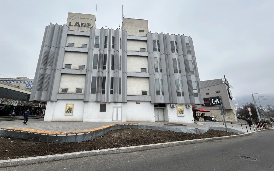 Zrekonstruovaný prostor u OD Labe. Na jaře dojde s vysázení zeleně.