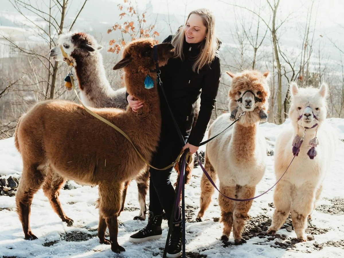 V roce 2024 získal ocenění za předchozí rok například projekt venčení alpak z mostecké alpakárny. I nadále je to velice oblíbená kratochvíle nejen pro místní, ale i pro turisty. Foto: FB Alpakárna