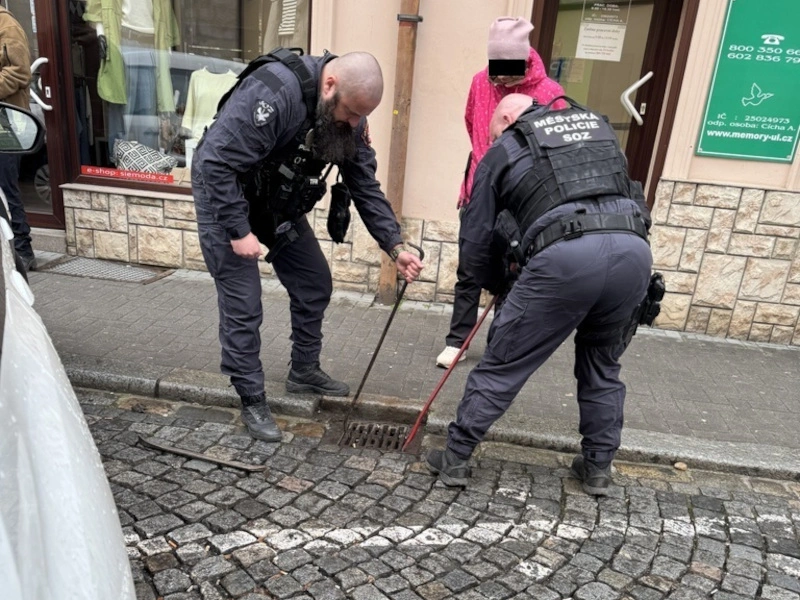 Ústí nad Labem - Strážníci městské policie pomáhali ve středu dopoledne ženě, které spadly klíče od auta do kanálu. Událost se stala v ulici U Kostela u obchodu s galanterií.