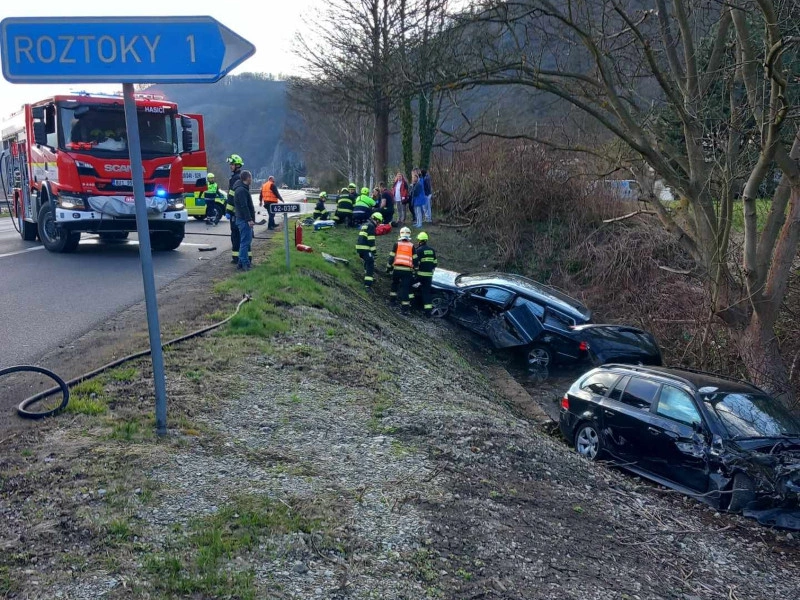 Roztoky - Ve středu 1. dubna v 17:25 se na silnici I/62 u obce Roztoky na Ústecku stala vážná dopravní nehoda, při které se srazila dvě osobní vozidla. Nehoda si vyžádala tři zraněné osoby.