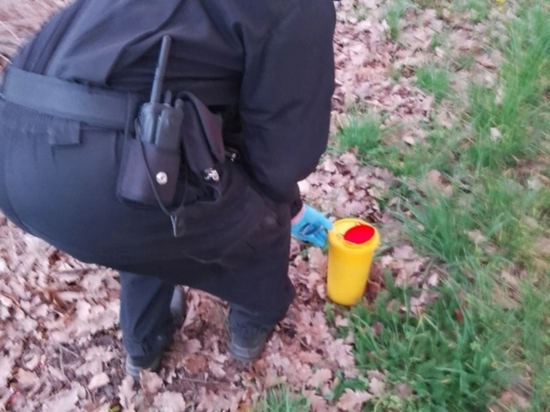 Strážníci prohledali okolí nálezu, kde našli celkem tři kusy použitých injekčních stříkaček. Ty skončily ve sběrné nádobě, určené pro sběr infekčního materiálu.